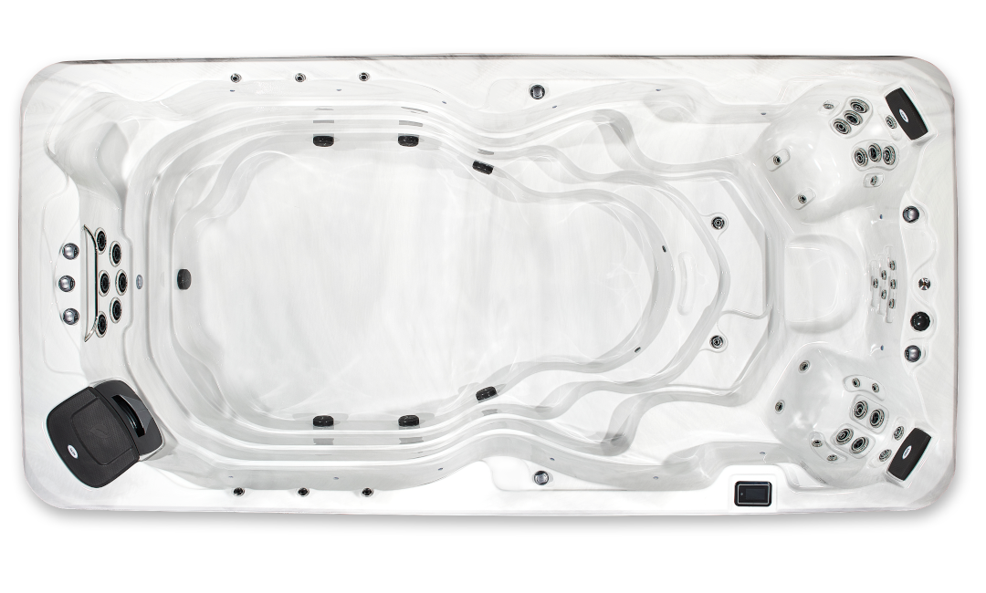 Swim in place, for as long as you want, as hard as you want. Designed with a longer, wider swim lane and equipped with 3 – XP3E Swim Pumps powering 6-Swim-Power Turbo Jets (110 gallons per minute each), the S.W.I.M. 16 E is certain to deliver the perfect aquatic workout for you and your family. The jets are divided into 3 zones and the k.1000 Touchscreen has 6 built-in speeds that can be programmed to create a H.I.I.T. (High-Intensity Interval Training) swim workout specifically designed for you.